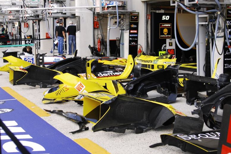もっとバラバラだったのがマクナル・コルベット。  これはちゃんとレースまでに組み立てられるのか?(^^;ちなみにAMのステッカーはアマチュアクラスの事ですが広義のアマとは違う。   でもまあここまでやらないとルマンでは一番下のクラスでも走れんのかとそのレベルの高さを再認識しました。