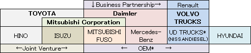 【주된 버스 메이커의 관계.굵은 글씨는 주주, 화살표는 제휴 관계를 의미한다.】