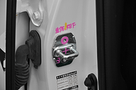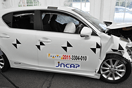CT200h의 각부에는 마킹이 있었다.NASVA측에서, 각부의 일그러짐 상태를 계측하기 위한 마킹이라고 생각된다 차체 후부에는 구멍이 열려 있었다.NASVA에 의한 계측기 설치를 위한 구멍이라는 것 NASVA의 시험 번호