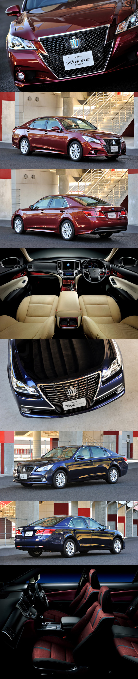 익스테리어는, 한눈에 신형 크라운이라고 아는 개성을 요구해 왕관을 모티프로 한 박력 있는 후론트페이스가 채용되었다.포멀한“로열”시리즈와 스포티함을 추구한“애슬리트”시리즈의 2 타입이 설정되는 것은 지금까지 대로다.