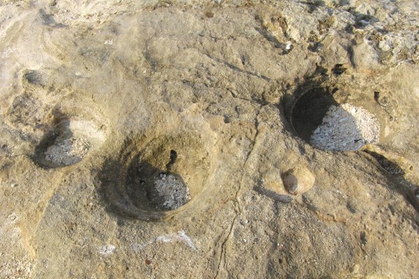 물결에 씻어진 돌이 대굴대굴 누워 할 수 있던 둥근 구멍···인가.이런 지형, 어딘가의 강에서 보았군.