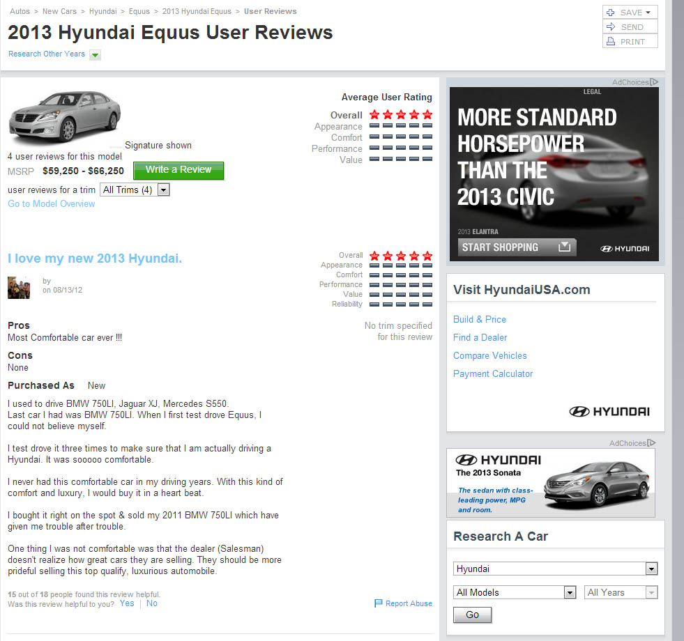 미국인의 현대차 Equus 평가