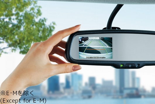 その他、「リヤビューモニター付ルームミラー」がE・M以外のグレードに装備されている。