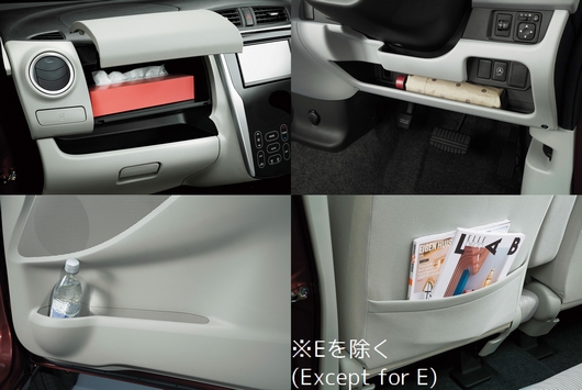 日常利用が多い軽自動車だけあって、小物類の収納スペースを随所に配置。