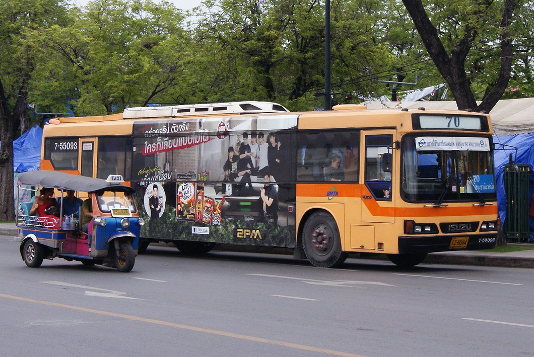ISUZU의 버스. 한국의 2 PM가 무엇인가 광고 하고 있네요.그러고 보면, 멤버의 한 명은 타이인이었지요.