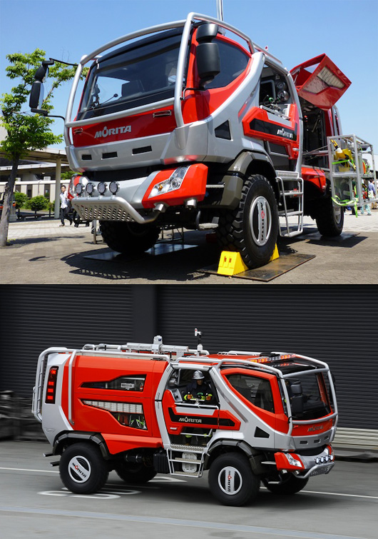 同車両は、世界三大デザイン賞のうちの2つ、2011年度イデア賞の金賞と2011年度レッドドット・デザイン賞のベスト・オブ・ザ・ベストを受賞。2010年6月にドイツのライプツィヒにて開催の消防関連展示会「INTERSCHUTZ 2010」に出展し、その後中国、韓国、札幌、東京、名古屋などにて出展しているが、広島での出展は初めてとなる。当日は、オペレーションデッキへの試乗も可能。
