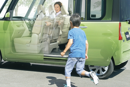 3대째가 되는 신형 「TANTO」에서는, 선대 모델로부터 센터필러를 슬라이드 도어내에 내장하는 「미러클 문호 개방 정책」을 계승하면서, 운전석측의 리어 도어도 슬라이드 도어로 변경해양측 슬라이드 도어에 진화.정평 있는 차내의 넓이에 새로운 향상을 도모해, 앞자리의 헤드 클리어런스를 20 mm, 헤더 거리를 120 mm확대.240 mm의 전후 슬라이드량을 가지는 리어시트와도 조합해경자동차 넘버원의 넓이되고 있다.