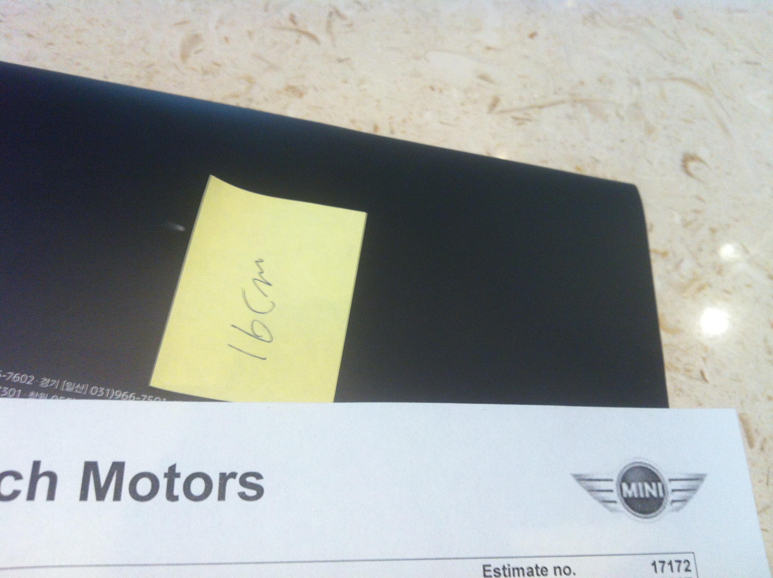 (사진) 나의 소유의 세컨드 자동차 bmw mini 점검 수리 청구서 (며칠전)