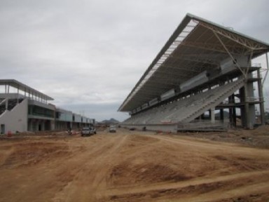 벌써 피트 빌딩과 메디카르센타는 완성하고 있어, 메인 그랜드 스탠드도 형태가 되고 있다.