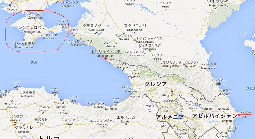 場所的にはソチを挟んで反対の東側になりますね。ウクライナとは。
