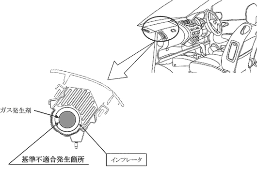리콜 대상 차량의 조수석에 탑재된 에어백의 인플레이터를 교환할 예정이지만, 개선 조치용 부품의 준비에 대폭적인 시간이 필요한 것부터, 잠정 조치로서 조수석용 에어백의 기능을 정지한다.당면은 조수석용 에어백이 작동하지 않기 때문에, 선 바이저부에 경고문을 표시하는 것으로 유저에게 주지를 도모한다.