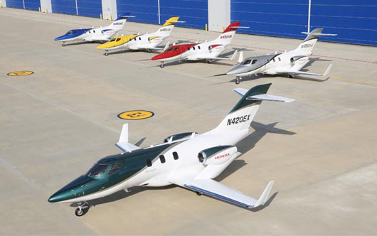 혼다 제트는 양산 1호기의 도장외, 실버, 적, 황, 청의 도장도 있다.북미와 유럽에서 수주를 개시하고 있어, 공장에서 양산 개시의 준비가 진행되고 있다.10기가 최종 조립 단계에 있어, 2015년 1월부터 3월에도 미 연방 항공국(FAA)으로부터 형식 증명을 취득해, 납품해 나간다.