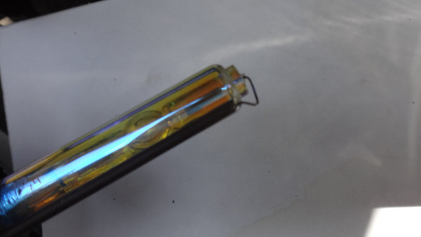 (;´・д・) でも、先端は笠にあたってる風なんだよなぁ。金属線はマイナス線なのか?