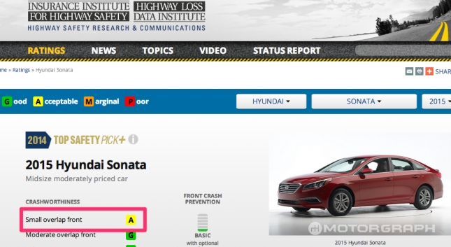 지난 3월, 현대 자동차는 스몰 오버랩 테스트로 Good(굿)의 평가를 얻는 것을 자신 연이 있어, 이 점이 많은 미디어를 통해서 보도되었다.신형 소나타의 신차발표회에서, 현
