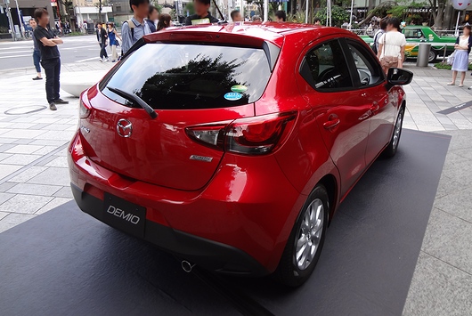 後ろ姿は先代・現行「DEMIO」を継承したという感じの造形です。