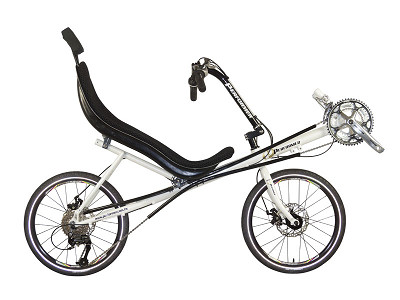 はサドルの代わりとなる背もたれつきのシートにもたれるように坐り、足を前方に向けた姿勢での屈伸運動を動力とする。英単語の「recumbent」はも