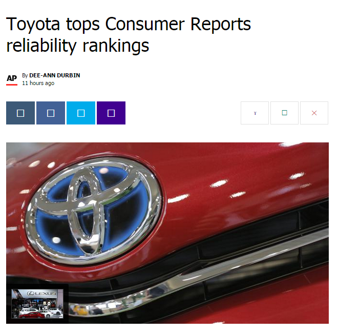 Consumer Reports 결과 발표..렉서스 존경합니다.