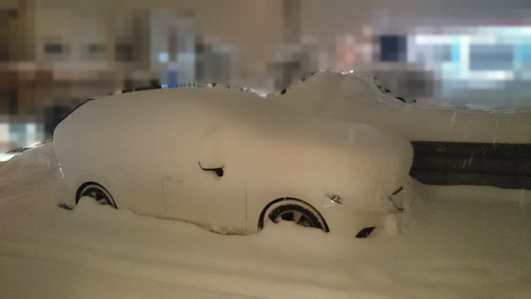 酷い雪で、この雪を落としてドライブに出掛けたところで、出先で雪に嵌まるなり面倒なことになりそうに思ったので、このまま放ったらかしにしていましたよ。