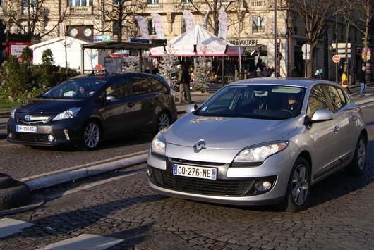 왼쪽에서, TOYOTA 「PRIUS +」라고 Renault 「Megane」.