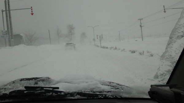 키타미의 거리에서, 점심에 아사히카와 라면을 먹은 후, 국도에 나오려고 하면 제설 부대가.