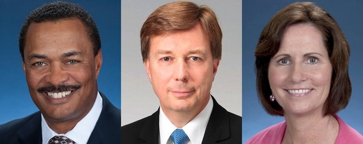 【화상:왼쪽에서, 레이놀드 신상무, 르로와 신부사장, 험프 신상무 】