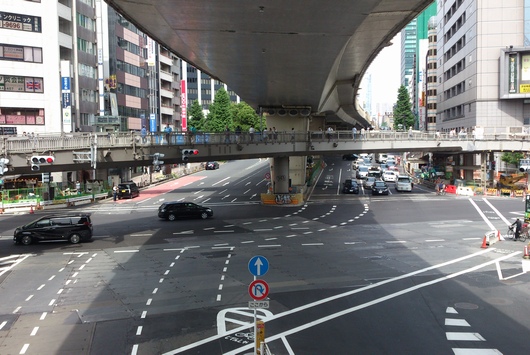 메이지 도리(카와)와 국도 246호선(벼랑), 록뽄기 거리(벼랑)가 만나는 교차점.시부야안에서도, 「골짜기」다운 지점입니다.