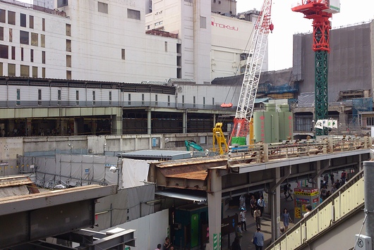 토큐 백화점이나 토큐 도요코센이 철거되어 JR야마노테선의 홈이 잘 보이게 되었습니다.