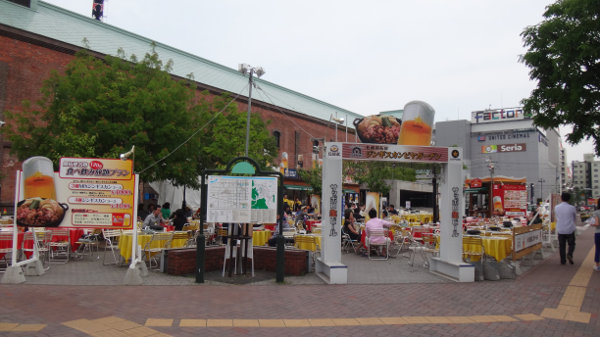 ビアガーデンかぁ。ジンギスカンの臭いが食欲をそそるねぇ。昼飯食ったばかりだってのに。