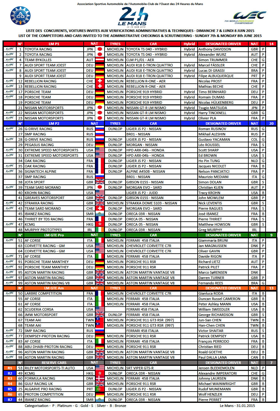 2015 르・맨 24시간 레이스 엔트리 리스트