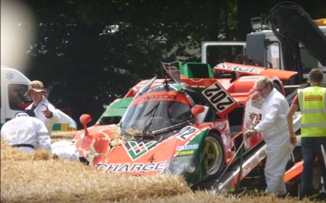 3台製作されたマツダ767Bのうちの1台が、グッドウッドのヒルクライムで事故。車両は右フロントと側面を大破したが、幸いにもドライバーは無事。観客が撮影した事故の様子は、動画共有サイト経由で見ることができる。