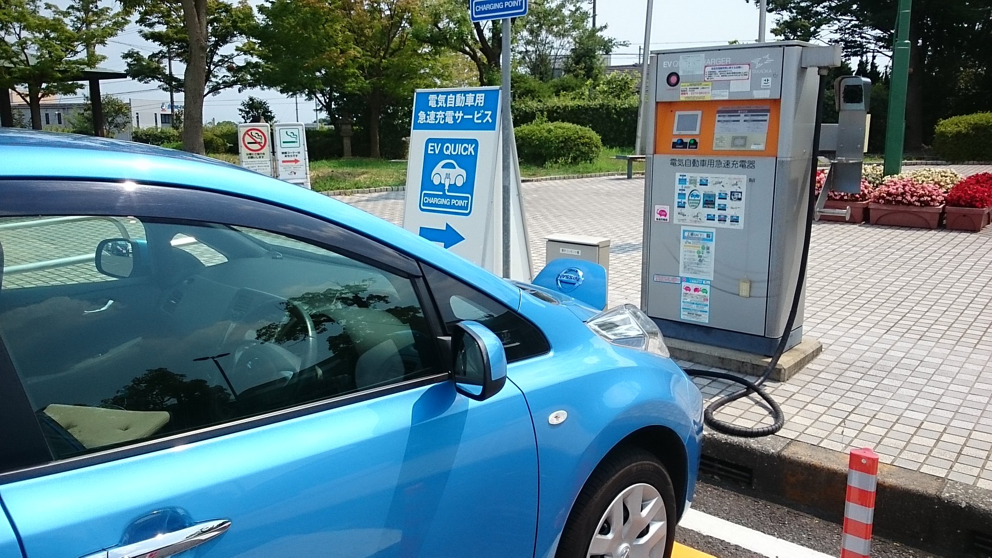 あと、充電器の待ち行列も経験しました。他の方のLeafやアウトランダーが充電しているのを、後ろに並んで待ちました。充電器は30分で充電が打ち切られる設定にはなっているのですが、充電している車の持ち主が現れないと、次の人が充電できないわけで、その点のモラルやマナーというのがオーナー任せになっているのが現状です。もう少し、スマートなやり方を普及させないと、待ちぼうけの電欠自動車がイライラしてしまいます。