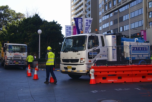 이번 자동차 관찰은, 날이 새 철수 작업중의 트럭으로부터 스타트입니다.일본의 공사 현장에서도 친숙한 트럭이군요.ISUZU「F series」와 MITSUBISHI-FUSO「Fighter」.이번은, 도쿄・・・가 아닙니다.