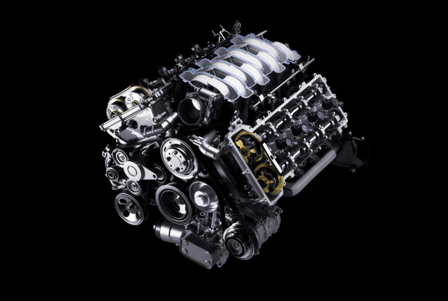 他優エンジンは高圧鋳造アルミニウムブロック適用で重さを減らして剛性を確保したし 8気筒エンジンでは世界最初で 2段可変プラスチック吸気マニホールド, 中共クランクシャフト, 卑下イブ(Beehive) バルブスプリング, 白金イリジウム異種突き出電極火点しプラグなどの新技術を適用しながら国内 177件及び海外 14件の特許を出願, 100% 読者技術力を確保したりした.