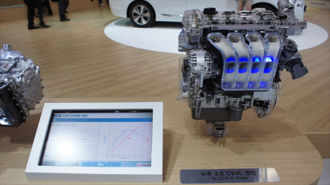 ヌウエンジンは二つの形式があるのに GDI システムが適用されたヌウエンジンで現代 i40 に適用されたしソナタ K5に適用されたヌウエンジンは現代自動車最初で可変バルブリフト技術(CVVL)が適用された.
