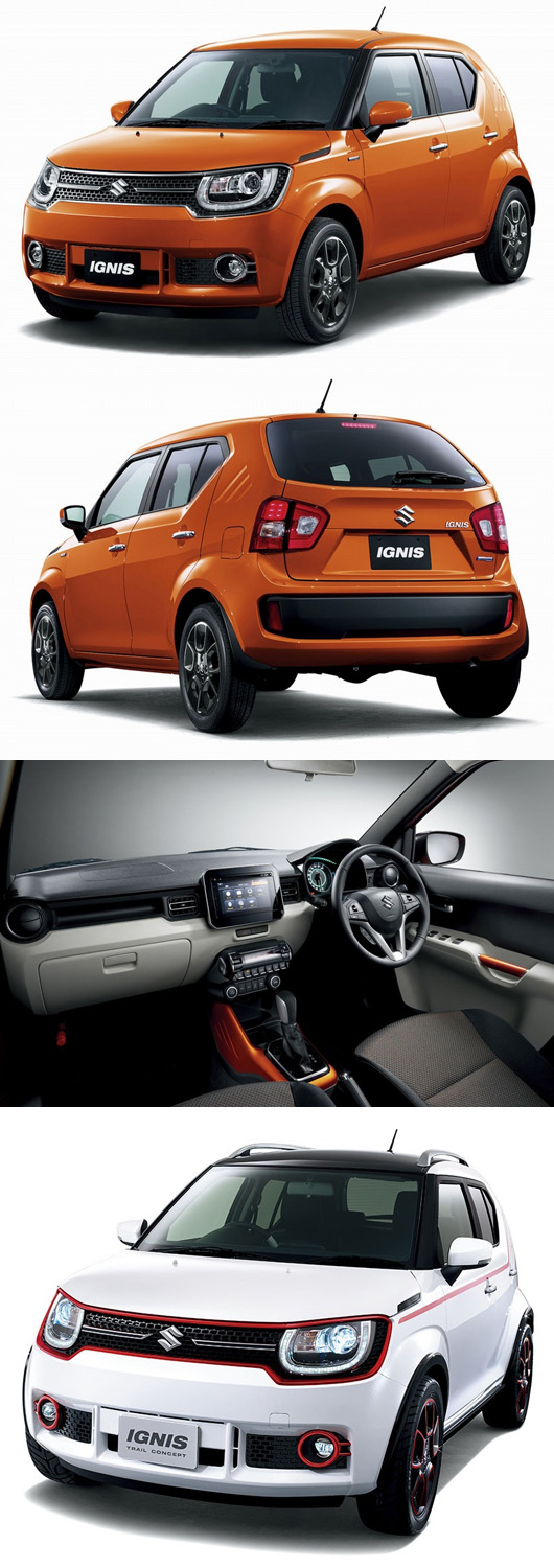 『이그니스』는, 컴팩트한 보디에, 심플하고 실용성의 높다 인테리어를 조합한, 신장르의 크로스오버 타입의 소형차.높은 아이포인트와 큰 로드 클리어런스에 의해서, 일상으로 편리하게 사용할 수 있는이다 가 아니고, 눈길이나 거칠어진 길에서도 안심하고 달릴 수 있다.또, 이그니스의 러프 로드색을 강하게 한『이그니스 트레이르콘세프트』도 출전.대경 타이어나 아치 몰등을 장비한다.