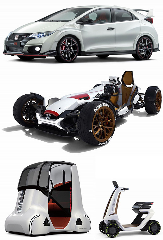 이 외 시판 예정차에서는, 신개발의 2리터 VTEC 터보 엔진을 첫탑재한다 『시빅 타입 R』나, UV(자외선) 약 99%과 IR(적외선)를 컷 하는「360°슈퍼 UV・IR컷 패키지(가칭)」를 채용하는『N-BOX』를 출전.컨셉 모델에서는, 이륜차의 해방감과 4륜차의 운동 성능을 융합한『혼다 프로젝트 2&4』, 전방위 구동 차바퀴 기구를 채용한 2인승의 모비리 티『혼다 원더 스탠드』, 리얼타임 통신 시스템에 대응하는 가까운 미래 퍼스널 모빌러티『혼다 원더 워커』를 출전한다.
