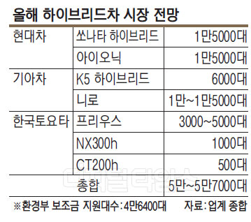 금년의 국내의 자동차 시장에서 하이브리드 차의 판매가 급격하게 증가할 전망인 가운데, 정부의 하이브리드 차를 구입 보조금 지원 예산의 문제가 대두할 가능성이 높게 전망되고 있다 .