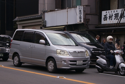 쿄토에서 보인 HYUNDAI 「H-1」.파랑 넘버였기 때문에 총영사관의 차일 것이다.단지, 차명 엠블럼으로부터 추측하면 한국 사양은 아닌 것 같다.몰개성적인 미니밴이다.