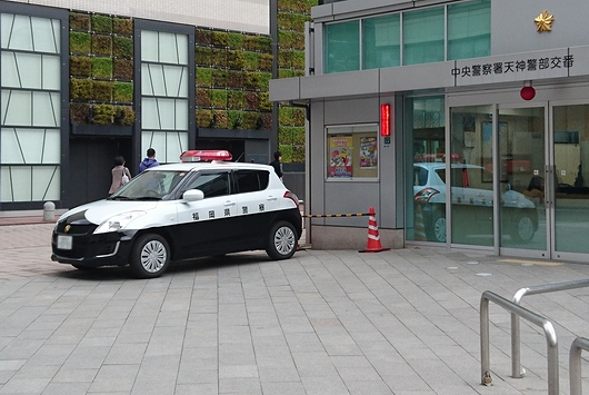 니시테츠 후쿠오카 텐진역 가까이의 경부 파출소에 세워져 있던 SUZUKI「SWIFT」의 경찰차.