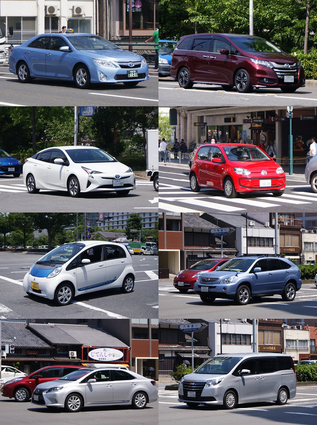 TOYOTA「CAMRY」, Honda「ODYSSEY HYBRID」, TOYOTA「PRIUS」, Volkswagen「up!」, MITSUBISHI「i-MiEV」, TOYOTA「HARRIER HYBRID」, NISSAN「LEAF」, LEXUS「HS」, TOYOTA「NOAH HYBRID」.