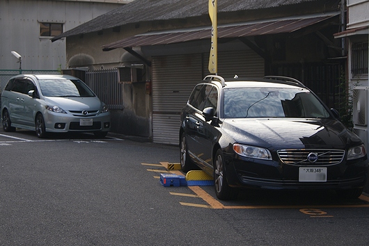 Mazda「PREMACY」와 VOLVO「V70」.우메다로부터 몇분의 장소에도 불구하고, 휑하니 넓은 주차장이나 너덜너덜의 낡은 건물을 남겨「소금절이」로 하고 있는 토지가 많다.절세 대책・재개발까지의 시간 벌기일 것이다.