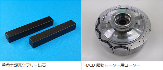 거기서, 다이도 특수강은 내열성이 높은 자석의 제조를 가능하게 하는 열간 가공법의 기술을 한층 더 진화시켜, 혼다는 구동 모터 개발의 경험을 살려 자석 형상을 재검토하는 등, 공동으로 개발을 진행시켜 왔다.그리고, 중희토류 원소를 전혀 사용하지 않고 , 하이브리드 차용 구동 모터에 적용 가능한 고내열성, 고자력을 실현한 네오디뮴 자석을 세계에서 처음으로 실용화했다.