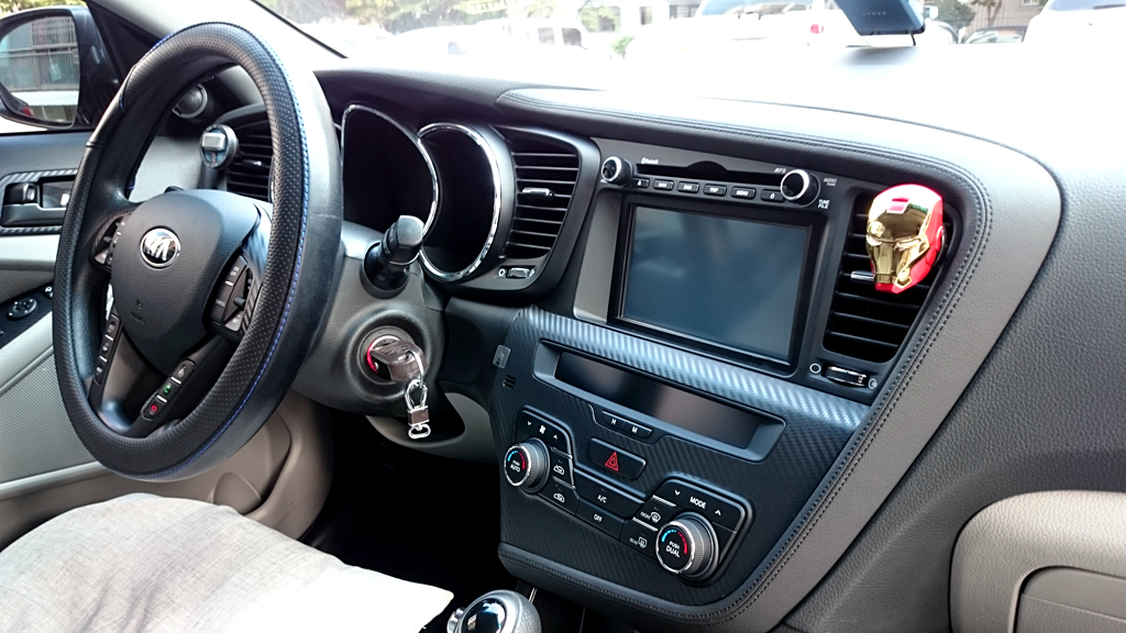 아이언맨 방향제와 K5 전용의 실내 카본 스티커를 구입해 붙인ww