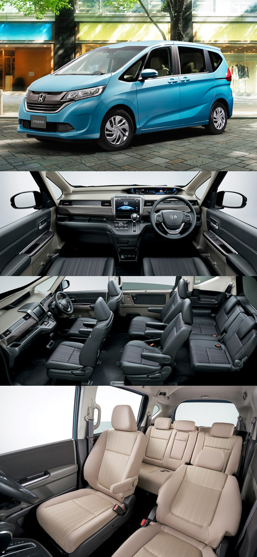 신형 후리드는, 전체 길이 4265 mm(종래 모델 4215 mm)의 보디 사이즈면서, 1〜3 번째의 시트간의 거리를 90 mm확대, 2 번째 캡틴시트를 장비한 FF차에서는, 2 번째 시트 슬라이드량을 120 mm 확대하는 등, 보디의 취급하기 쉬움은 바꾸지 않고 실내의 거주성을 향상시켰다고 하고 있다.