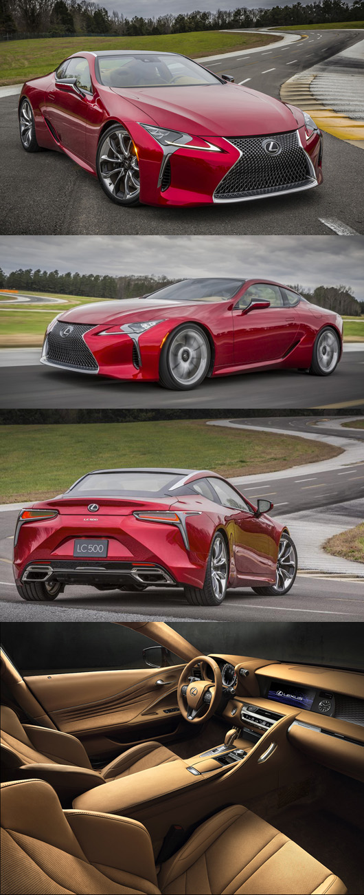 LC500 는 2016년 1월, 미국에서 개최된 디트로이트 모터쇼 16으로 처음공개.파워트레인에는, 『RC F』, 『GS F』용무의「2 UR-GSE」형태 5.0리터 V형 8 기통 가솔린엔진을 선택.북미 사양의 경우, 당초는 최대 출력 467 hp/7100 rpm, 최대 토르크 53.8 kgm/4800 rpm로 되어 있었다.