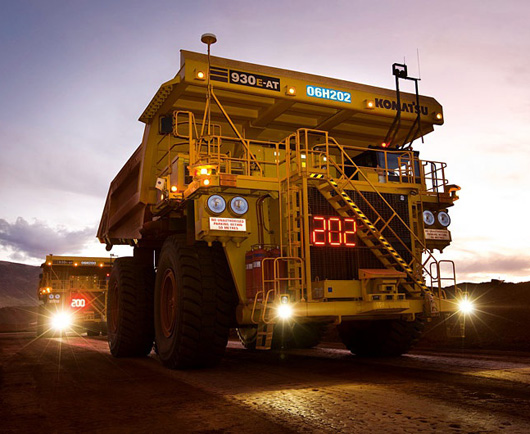 코마쯔는 2008년에 세계에서 처음으로 무인 덤프 트럭 운행 시스템(AHS)을 실용화해, 지금까지 칠레나 호주등의 대규모 광산에서 누계 10억 톤 이상의 운반 실적을 가진다.향후도 광산기계의 가동 최적화, 원격 조작, 무인화를 적극적으로 진행하는 것으로 광산 현장의 안전과 생산성 향상에의 공헌을 목표로 한다.