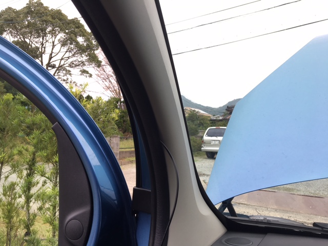 Aピラーを外すのも面倒臭いので少しだけ浮かせて押し込み。モールがあるので全然目立たないって。