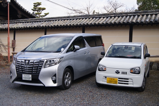 뭐원(오사카) 넘버의 TOYOTA 「ALPHARD」라고 MAZDA 「CAROL」.