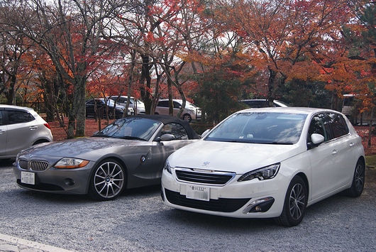 三河(愛知)ナンバーのBMW「Z4」と香川ナンバーのPEUGEOT「308」。ドイツ車やフランス車は見られますが、韓国車は皆無です。