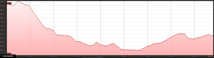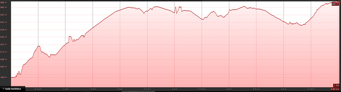 표고 프로필 화상은, 스트리트 알베르트 아기레라 스트리트 Vallehermoso의 것을 횡단하는 파세오・델・레이로부터의 루트의 상부에 상당합니다.우리는 나머지의 고도 프로파일을 취득할 수 없었습니다.이러한 결과였습니다: